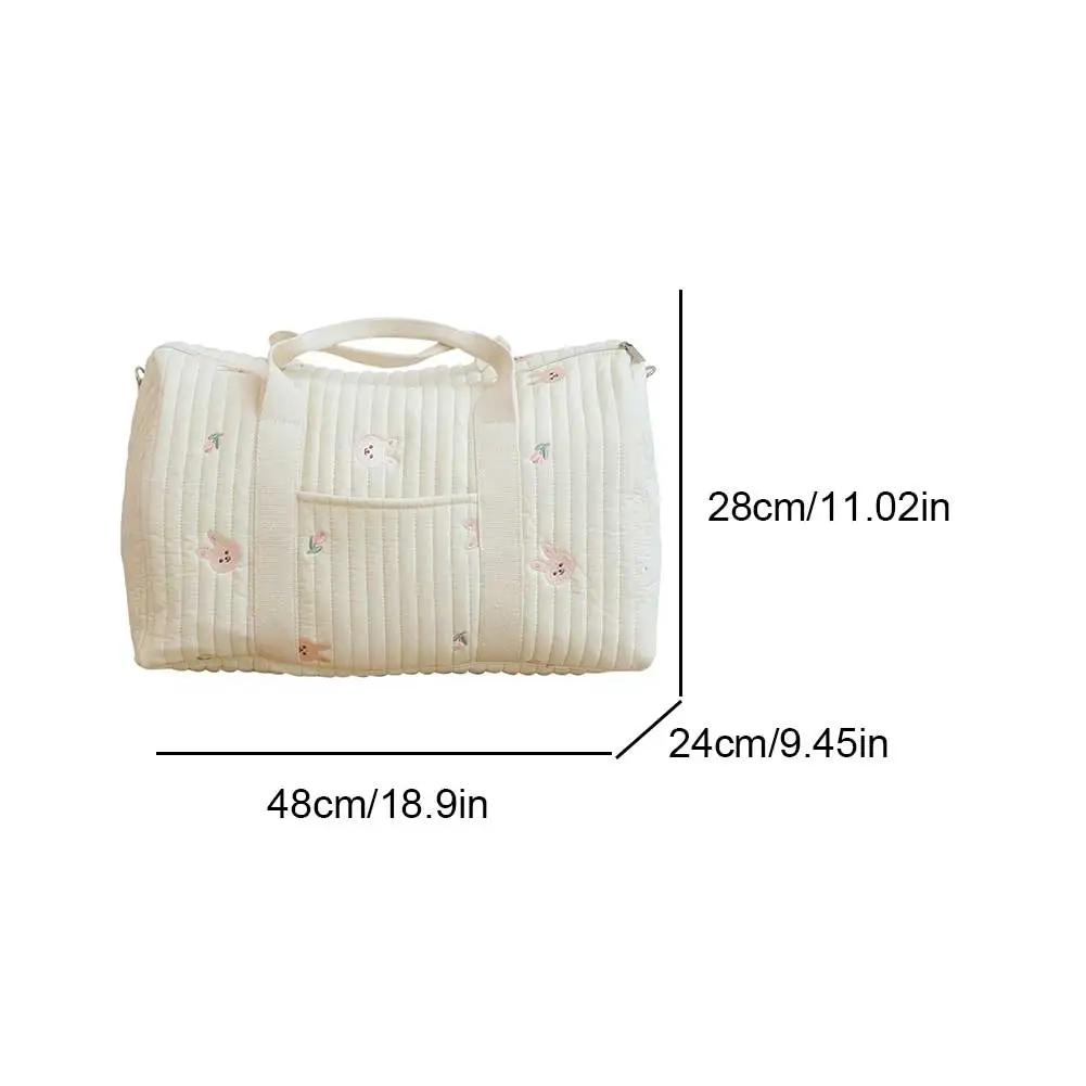 Baby Diaper Bag Embroidered Nappy Organizer Cute Cartoon Messenger Bag with Zipper Mom Bag Storage Bag Luggage Tote Bag for Travel Features: 1. Premium Material: This shoulder bag is crafted from cotton fabric, offering a luxurious and comfortable texture. It is built to last and can withstand the test of time, while also being incredibly easy to clean and maintain.